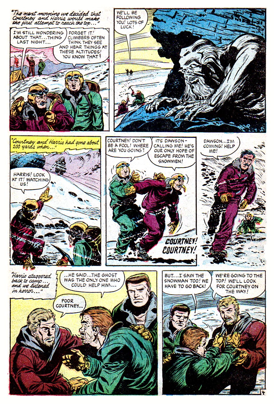 Now, that's what I call a chiller! ;) The story kind of lost me when the climbing party encountered the dinosaurs, but other than that I completely agree with Mykal – this was actually a genuinely creepy comic! The artist (does anyone know his name, BTW?) did a terrific job here in building up a sense of dread and impending, inescapable doom. I love how the snowmen didn't do much besides looming ominously in the distance like death omens. I can't thank you enough for posting this little masterpiece, Karswell.