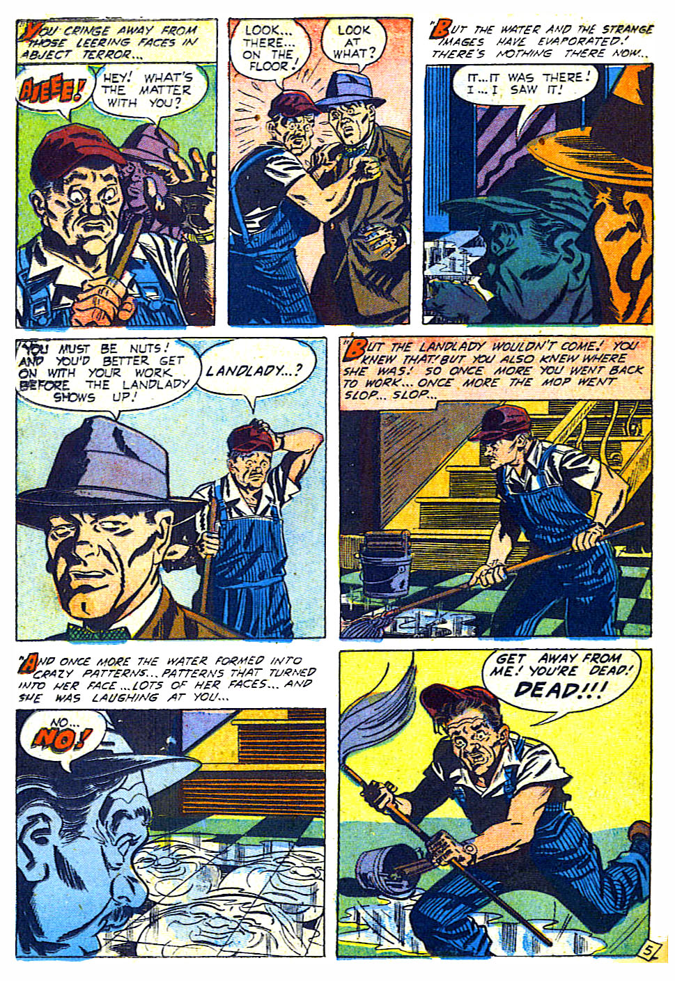 Time now to finish up with the last, but most certainly not least, of the stories from the September 1952 issue of The Tormented #2. You've seen THOIA post some crazy ass tales here over the last three years, but what in the world could possibly prepare you for a story about a killer mop? Well, there's a little more to it than just that, but here ya go... (and once again, thanks to Brian Hirsch for the scans of this entirely great issue!)