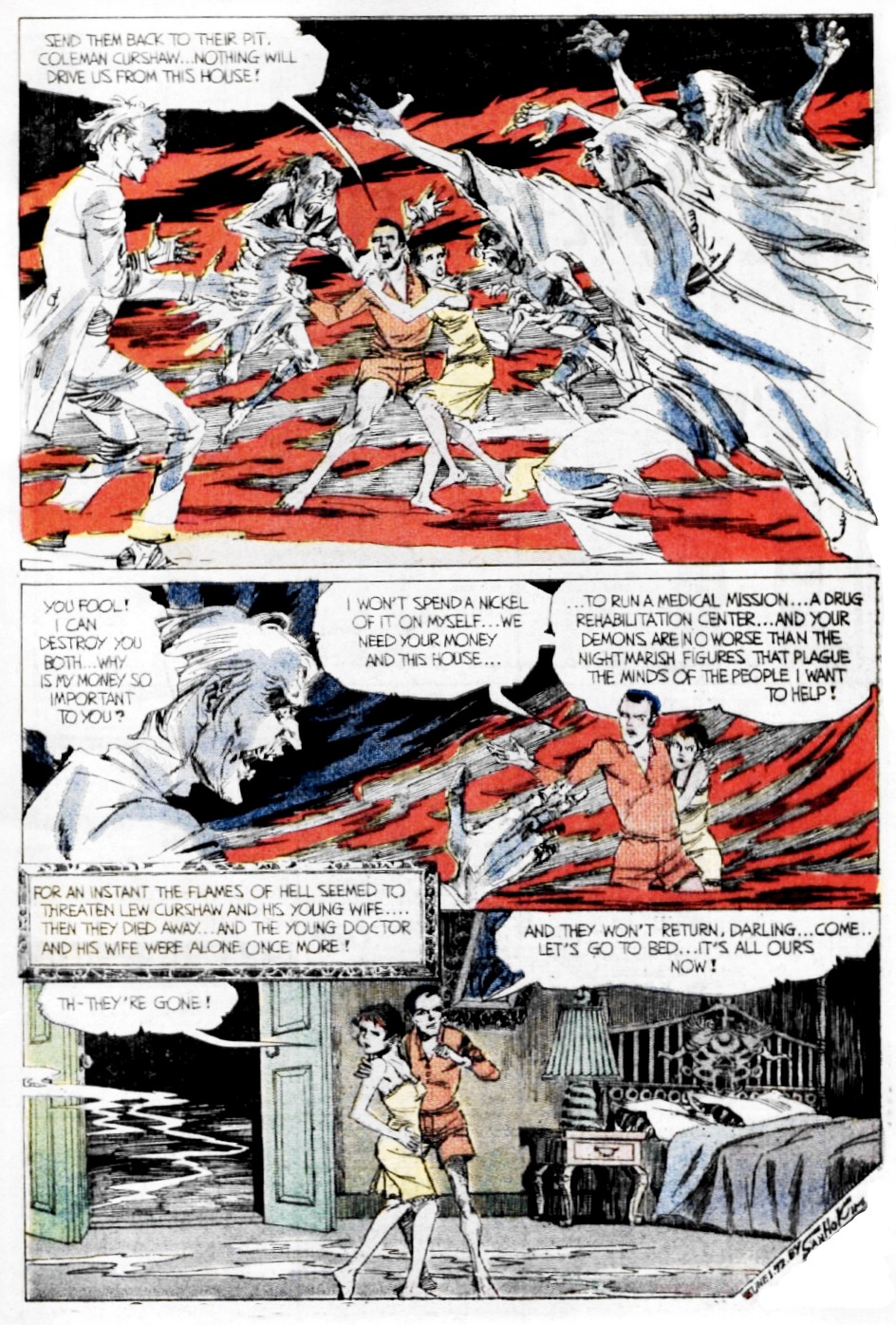 Stumbled upon a beautiful page of original Sanho Kim art over at Comicartfans HERE, and immediately had to dig up the full story, originally featured in the January 1973 issue of The Many Ghosts of Dr. Graves #36. And even with the familiar old "night in a haunted house inheritance" set-up, and rather abrupt ending, it's still full of chilling specters, and highly atmospheric moments.