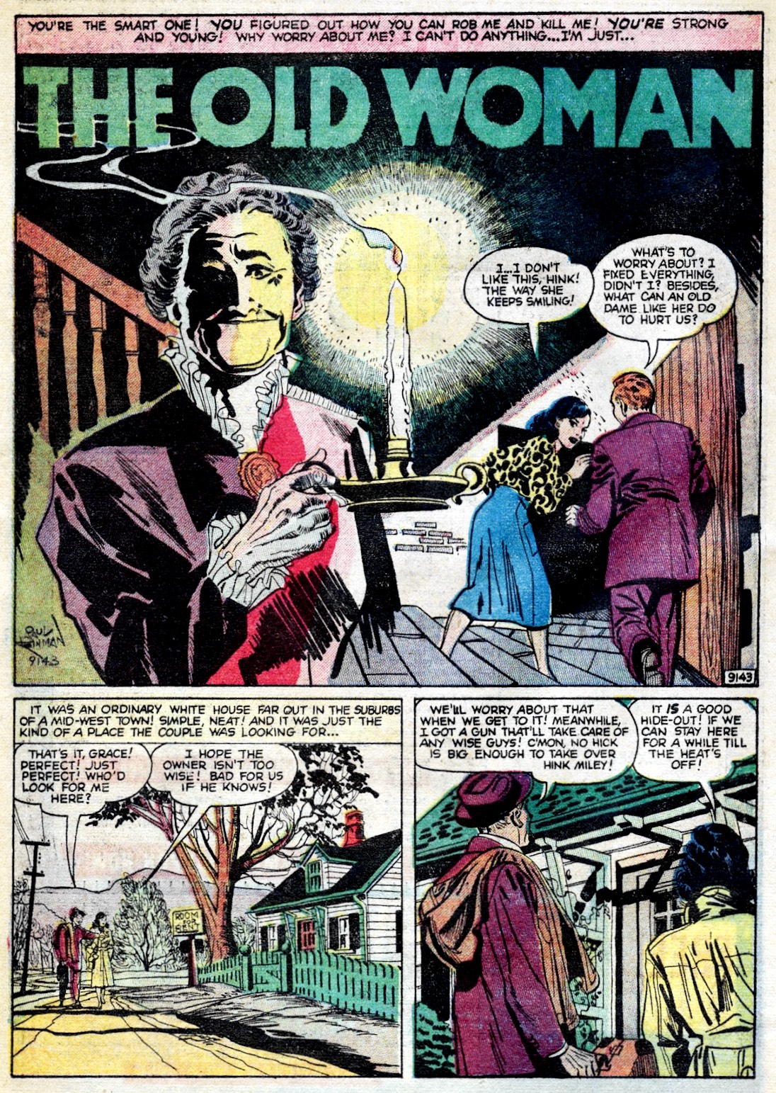 It just wouldn't be October without an Edgar Allan Poe post, or in the very least, a Poe inspired tale of terror. So instead of giving you the same old beat of a Tell-Tale Heart, or yet another murder in some rue-ish morgue someplace sorrowful, let's flip open a few fun pages from the January 1943 issue of Pep Comics #35, where The Hangman (he's a super hero, by the way) tackles another bird brain bad guy who's seriously flown the coop! The dark, shadowy hospital setting is nicely realized by the ever bad ass illustrative mastery of Bob Fujitani, --there's just a lot of great action art and eerie faces, not to mention an absolute load of lurid thrills 'n chills! You've likely never seen Poe presented quite like this before here at THOIA, and fans of The Spirit, Dr. Drew, etc are sure to get a kick (and maybe a punch or two) outta this one! And of course, if you require much more legitimate presentations of Poe's works, CLICK HERE for lots rots more in our archive...
